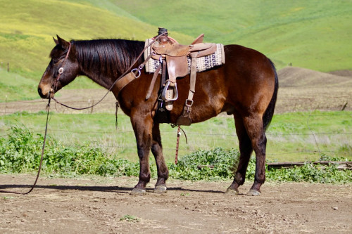 Bear — A Horse You Can Trust Every Time Rock Solid Bear is a 15.1-hand, 10-year-old and a stout 1200 pound classic old school foundation beautiful bay gelding with a steady mind and an honest, kind nature. He is a big, stout teddy-bear of a horse with a sweetheart personality — the kind you can pile the kids on, hand the reins to Grandma, and never give it a second thought. He prefers an easy, unhurried pace and stays relaxed and patient, making him a great fit for riders of all ages and experience levels. Used on the ranch his entire life and ridden extensively in state parks, Bear handles new places, new riders, and changing surroundings with ease. He is comfortable leading or following, stays quiet in a group, and goes along willingly without needing constant direction. Obstacles, flags, and traffic are nothing to him — he stays the same calm, steady horse no matter what’s going on around him. On the trail, Bear is as honest as they come. He travels low-headed and easy, goes where he’s pointed, and keeps a steady rhythm from start to finish. No rushing, no jigging, no drama — just calm, confident movement whether riding out alone or with others. In the arena, Bear is uncomplicated and enjoyable. He rides soft and collected with smooth, comfortable gaits and a dependable stop. He stays relaxed and unhurried, adjusting easily to his rider and remaining steady throughout the ride. Bear is easy to handle both in and out of the saddle. He ties, clips, and hauls quietly, stands patiently for the farrier, and does well living in a stall or turned out in a pasture. He gets along well with other horses, is not barn or buddy sour, and can sit and come right back to work like nothing changed. Bear is the kind of horse you don’t have to manage — a big, stout sweetheart you can trust to take care of his rider every step of the way. Longhorn Ranch Dina Cabral: 831-537-1915 Transportation assistance available nationwide Call or text for more information or to schedule a visit