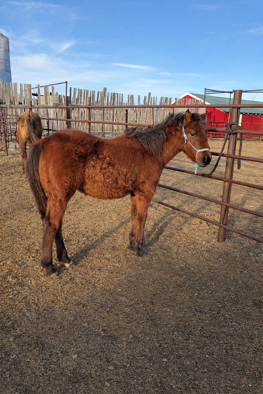 This filly will grow up to be a looker! Out of a good son of Once in a blue boon and a Palo Duro Cat daughter. She is Gentle, halter broke and stands tied. Very quick on her feet. Attached is her full sister as a long yearling so you can see how shell grow up! Should have some good size to her.