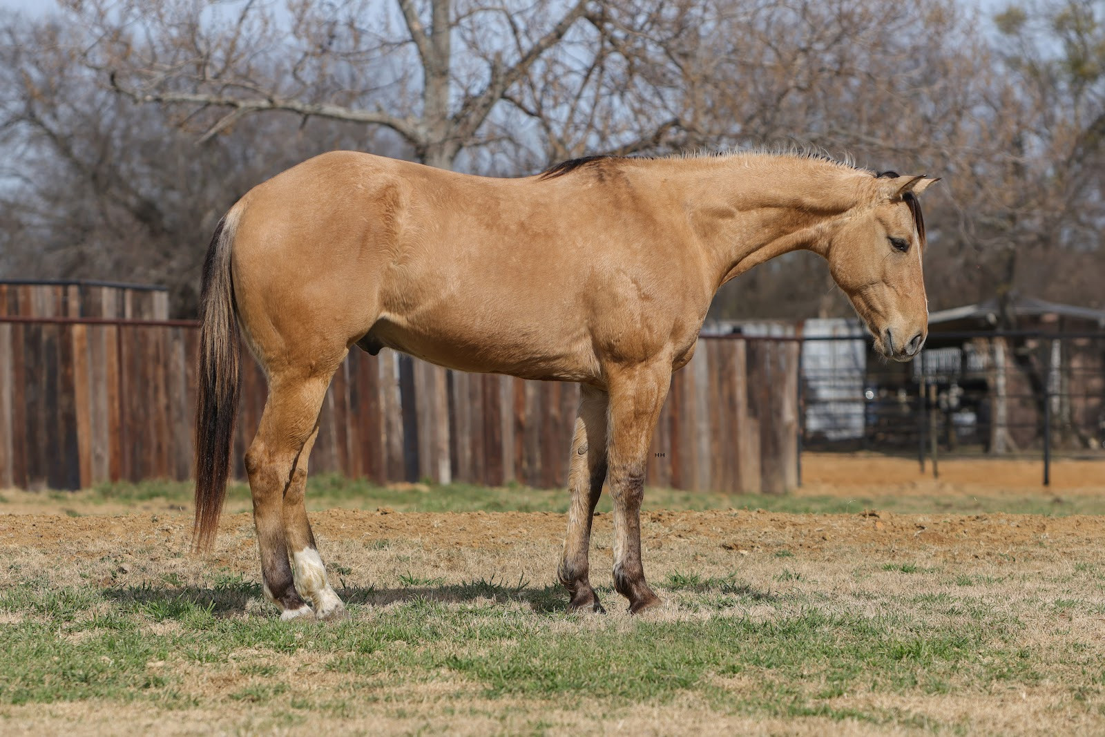 Churro is a 5-year-old dunskin gelding standing 15.2 hands tall with the kind of mind and experience that’s hard to find at any age. He’s been a true working ranch horse, handling everyday chores outside, penning back cattle weekly at the sale barn, loading trucks, shagging bulls, and picking up bucking horses. He’s also traveled to the wagon races in Clinton, Arkansas, and has been ridden through the famous Fort Worth Stockyards down Exchange Avenue, confidently navigating traffic, crowds, and commotion without hesitation.
