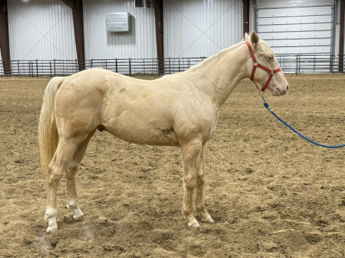 2024 Cremello Stud. He is sired by Smooth as Hell and a daughter of Frenchmans Streak. Halter broke and ready to start your way.