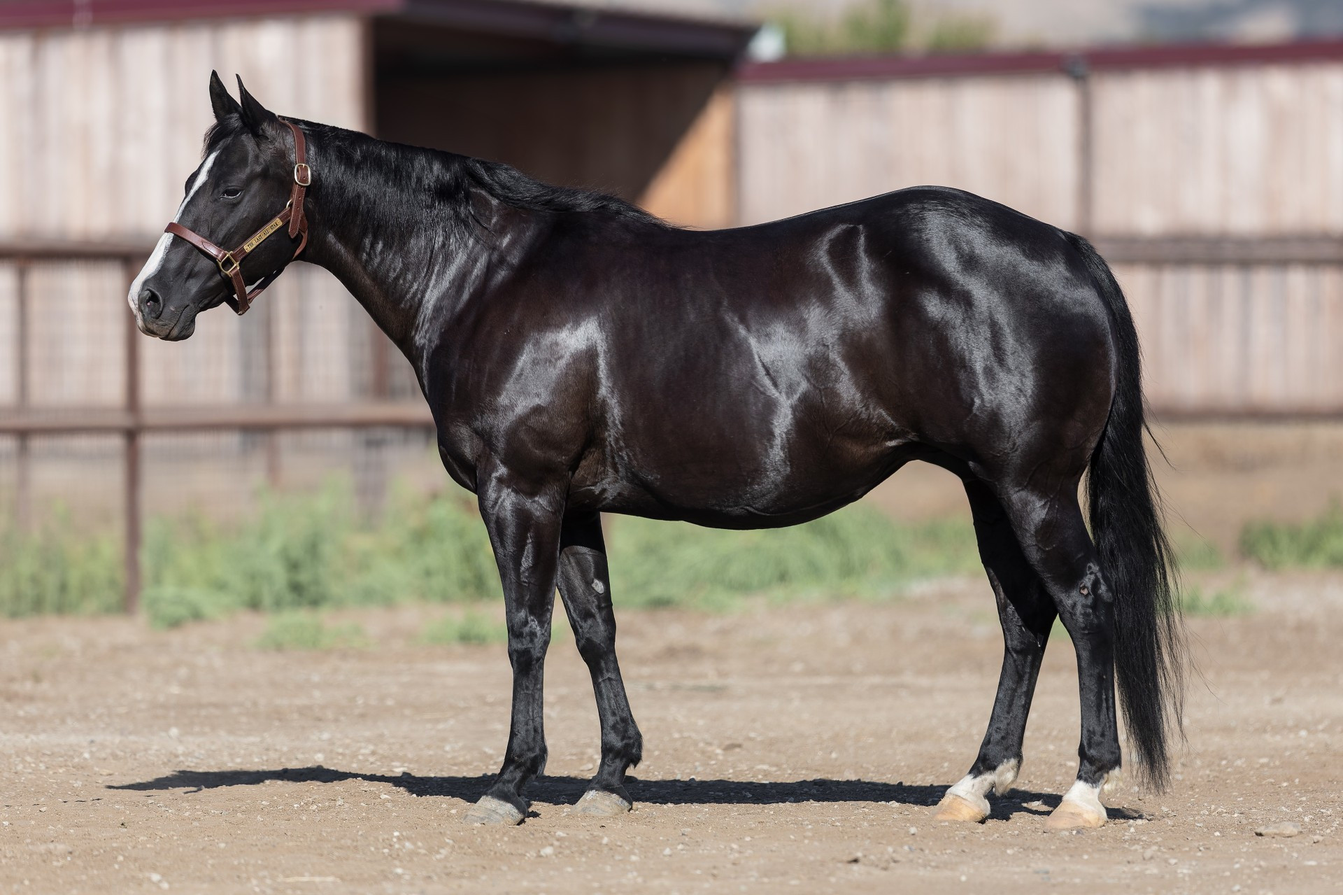 This beautiful black mare stands at 14.2 hands and is available for sale with the option to breed to either CR Hes A Tuff One or Roo To Do, at the buyer’s choice. She possesses the size and pedigree to be an excellent addition to any breeding program. She is 6 panel N/N. She is by Smooth As A Cat and out of All Stars (Grays Starlight x Bar J Watastar).