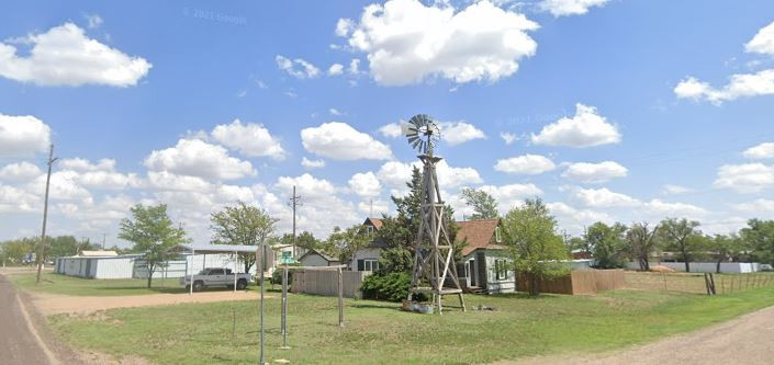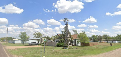 2-Story 3/2/carport, fenced 1-acre lot, new 3 stall pole barn w/pipe turnouts + tack room. Former JR Goodman ranch house but w/modern conveniences. Natural gas, 16 SEER HVAC, st/stl 3-dr frig, range, dishwasher, eat-in kitchen, dining room, living room walk out to west porch, foyer w/walk-in closet, tin ceiling in rustic master bedroom, washer and gas dryer in laundry room off back porch - shower room - half bath room, and bathroom w/antique footed soaking tub. Hardwood & tile flooring. Jackknife steep upstairs and watch your hat to 4 dormer rooms, one at each compass point. Private patio w/shade trees. No waterbeds, no smoking inside home. No city trash collection/mail delivery; MUST RENT PO BOX in Wildorado to receive mail.