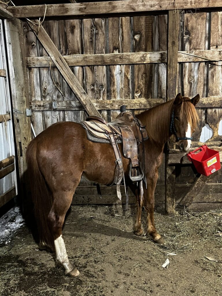 Pretty good little quarter pony been used a bunch on the ranch been outside and also rode a bunch at the sale barn has one little scar on his face but other than that all sound and everything.