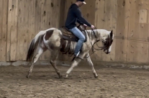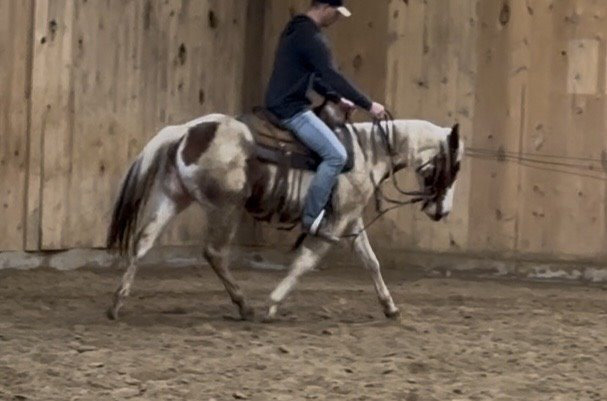 Robin is a very cute filly that is really cool to ride. She has one partial blue eye and she stands out everywhere she goes. This unique filly is very intentional about where she places her feet and this makes her very efficient about her movements. She is a true prospect for any of the cattle events, or if you want to use her to raise some beautiful babies, she will definitely leave her mark on them.