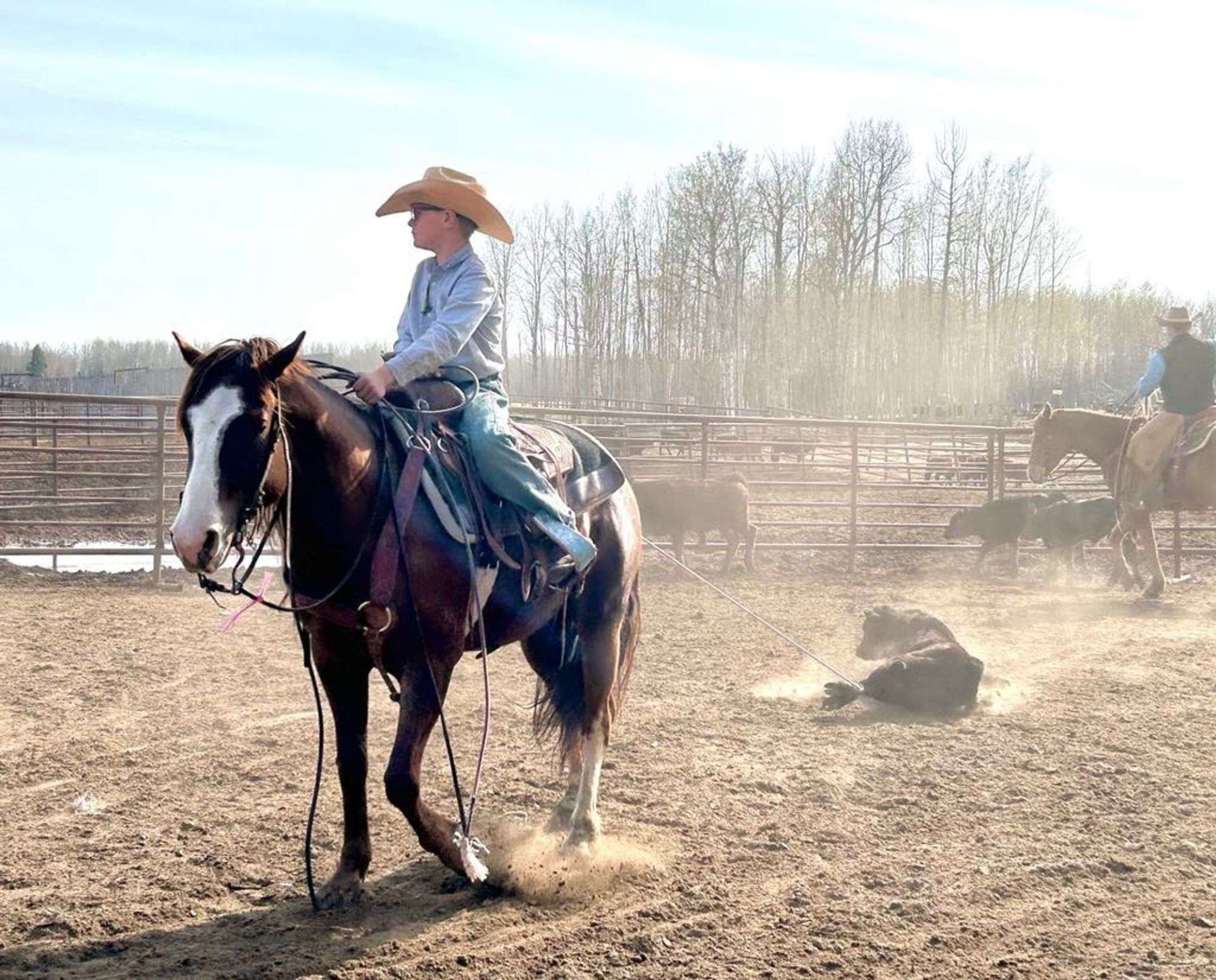 Lone Ranger has been hauled to jackpots the last 2 years. He has lots of speed for a horse his size and can really stop! He has also seen lots of hours in the branding pens dragging calves and been used lots pushing cattle up the alleys at jackpots. Lone Ranger is a cool pony that a handy kid will love to have around and use.