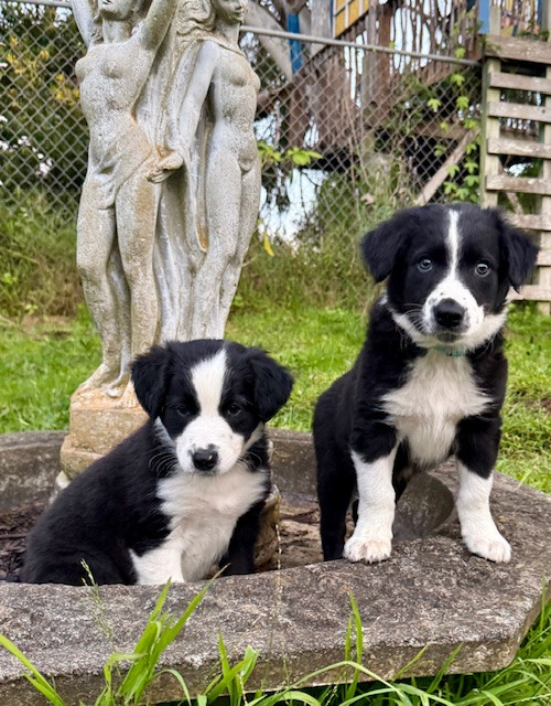 We have 3 black and white purebred male Border Collies from champion lines on both parental sides. They are extremely healthy, intelligent, and socialized, and they have been bred to be the ultimate cattle herding dogs. If you have been looking for the ideal Border Collie, please get in touch. We are located in Los Osos, CA. Pups were born on 12/28/25 and are nearly 9 weeks old at the time of this posting and ready to go. They are perfect for your ranch. Please call Frank at the below # for additional details, or to set up a showing. He also can share videos of the parents in action.
