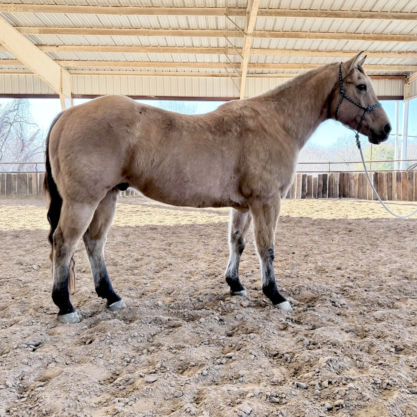 This is Spirit AKA ” Mr Rays Jewel” he is a 2013 AQHA 15h buckskin gelding. This gelding likes to please. He will do anything you ask, he has been owned by same family since he was a yearling. Been used for day work and ranch work. Has sorted lots of cattle in pastures and pens. Been rode down busy streets, on lots of trails, goes over obstacles, good out alone or in group. He is good in a stall or out in pasture. Would do well in Ranch Versatility shows or drill team horse. He gets along well in herd, loads and hauls great. He is UTD on all teeth floated. Ready to go do what ever you need. $9500 Weatherford, TX