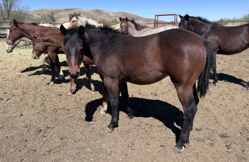 2025 bay quarter horse filly. Raised outside on a rough country, West Texas ranch. AQHA#6417405
