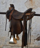 15" slick fork made by Cornman Custom Saddlery. Really good using saddle. All rough out, has a very comfortable seat, stirrup leathers are one piece for less under your leg. Drop plate rigging, good saddle strings and Oregon crossover rope strap.