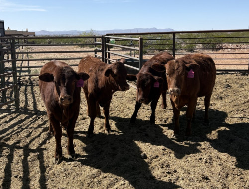 Four Red Brangus heifers for sale. Turn one year at the end of this month. ROD Ranch breeding. Was holding for replacements, but this drought…! Two rounds of Covexin 8, one round of CattleMaster 4VL5. $10k. Holding them in Las Cruces, NM. Delivery is an option depending…. DM me for more info.