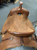 New Hickman ranch/barrel saddle. Rouch out and basket stamp combo. Monel stirrups and twisted stirrup leathers.