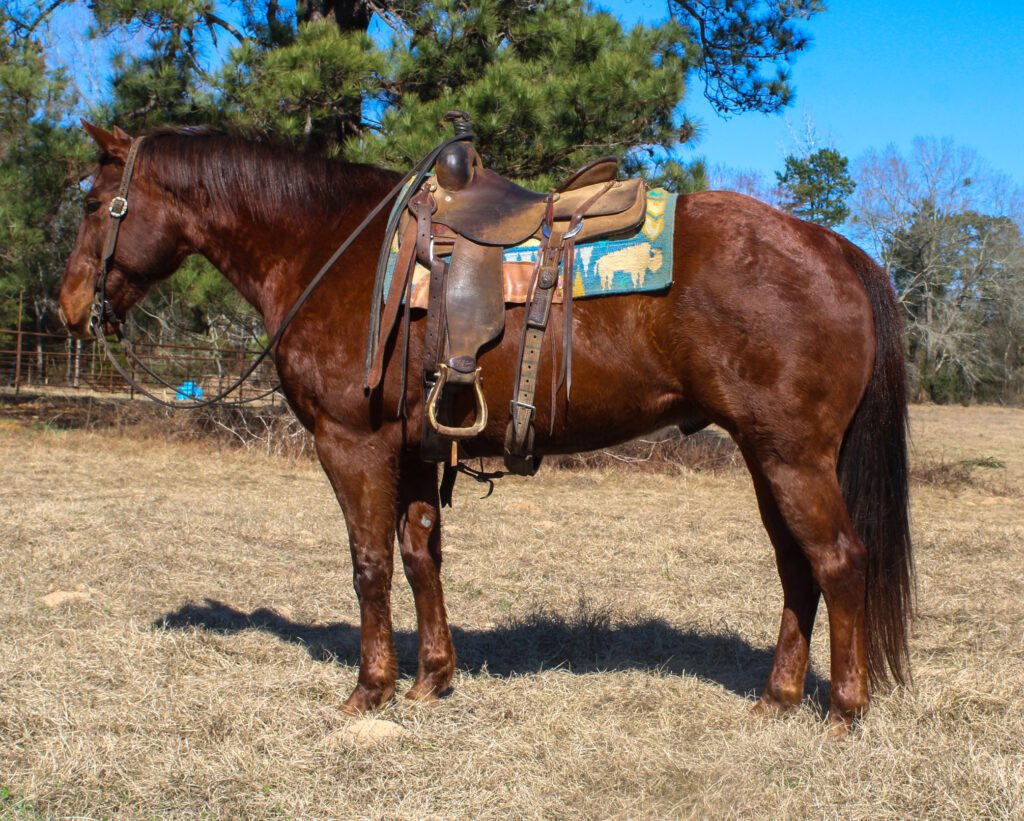Versatile ranch or trail riding horse with a good mind and solid foundation. He’s been used to gather and check cattle but is just as comfortable covering miles on the trail. Sure-footed, willing, and steady, he crosses creeks, navigates brush, and handles rough terrain with confidence. The kind you can saddle up and put to work or enjoy on the weekend.