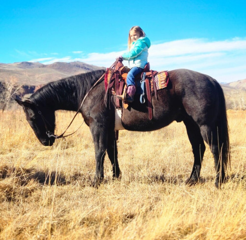 Blacky is a 15.1hh, gentle gelding that has been used as a kids/dude horse in our outfitting business. He has been ridden in some of Idaho’s steepest country and done great. He is getting older but still has plenty of years left in him. He also packs great and is easy to shoe. McGowan Outfitting Inc.
