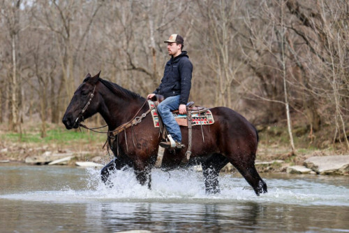 This is BETTY, a big stout Percheron mare that is broke to ride and work. She will hook up and work double or single. She has also been on the trails, through the deep water, in the mud, and in the mountains. She has lots of heart, stamina, and strength.