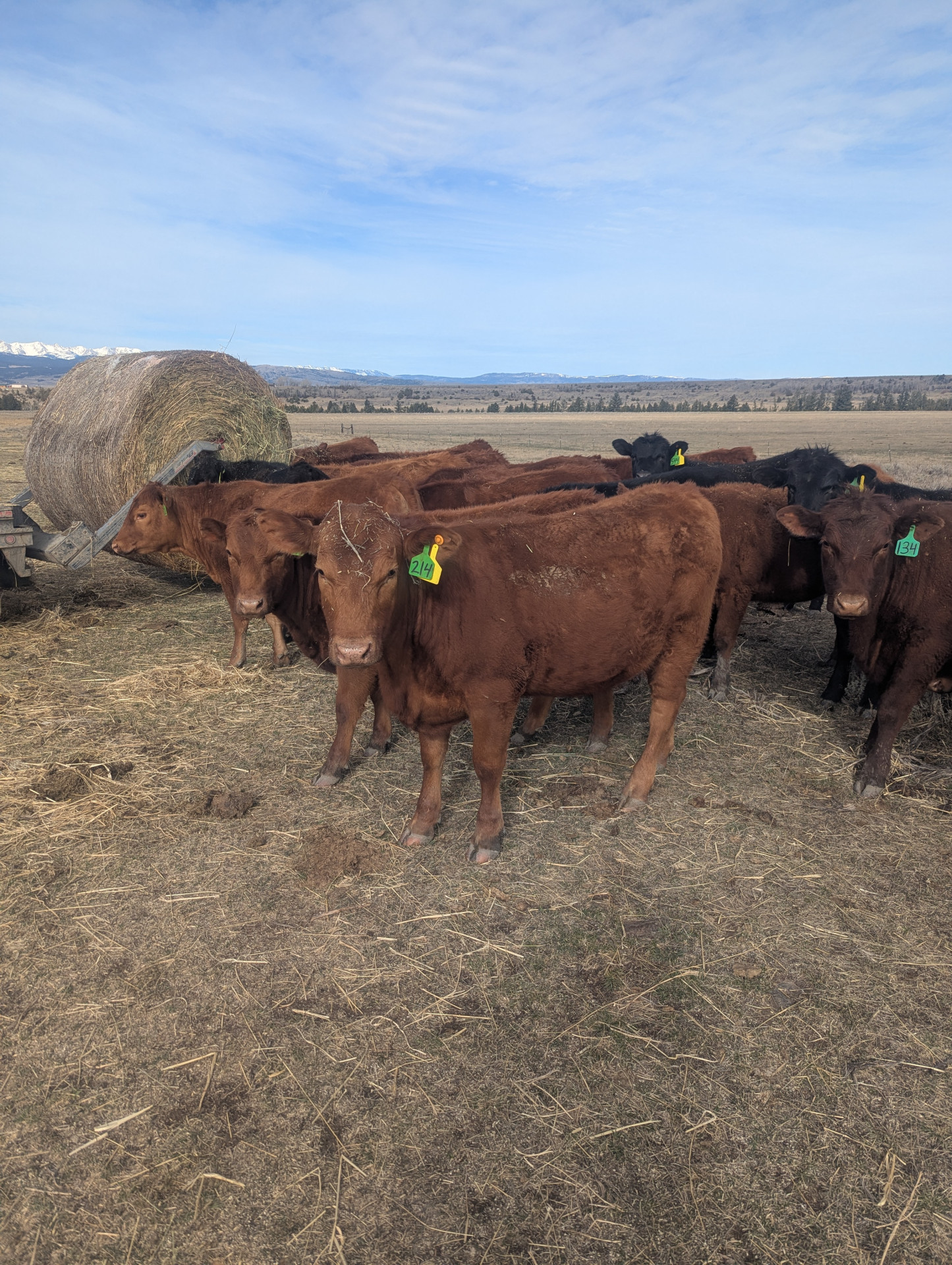 We have 10 Black and 12 Red Angus replacement April/May heifer calves. Average weight was 784 on 3/22/26. These our own home raised 1 iron calves that we kept the top end out of. Very gentle and easy to work. Video is when we brought them in to give them the 2nd pre-breeding shot.