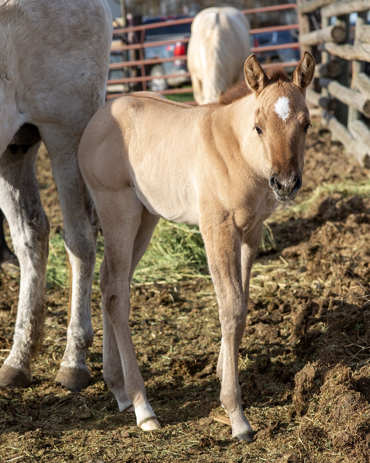 Her dam, Guns Miss Poco, “Opal,” is a sweet gray mare (base color grullo) known for her good conformation and exceptional mind. Opal is by Ima Sun ofa Gun, a talented horse that competed in reining cow horse events and ranch roping. Ima Sun ofa Gun is by Playgun and out of a Mr Sun O Lena daughter. On the bottom side, Opal carries the influence of legendary horses such as Poco Bueno and Mr San Peppy, known for producing durable, cow-smart performance horses.