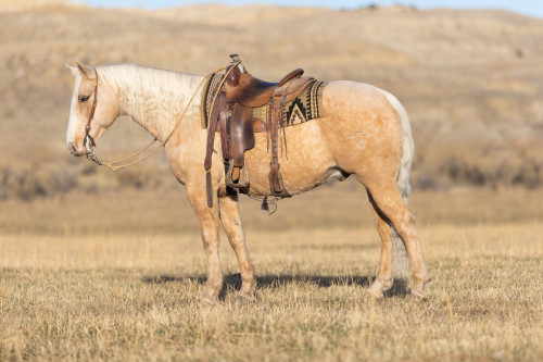 "Bandit" is your perfect sized AQHA gelding that can do it all. A flashy dappled palomino, he’s definitely easy to look at. Bandit is one that you can let sit for months at a time and is going to be the same horse when you catch him again. He’s the type of horse that can go all day, day after day. He’s been used in the mountains, and all around the ranch. Doctoring, branding, opening/closing gates, crossing water, sorting cattle etc. he doesn’t have a problem. Stands for the farrier, washes and bathes, and no buck, bite or kick. If you’re looking for an all-around gelding from hunting to cowboying, Bandit is your man. Contact Wood River Ranch Outfitters at 307-575-3719 for more information.