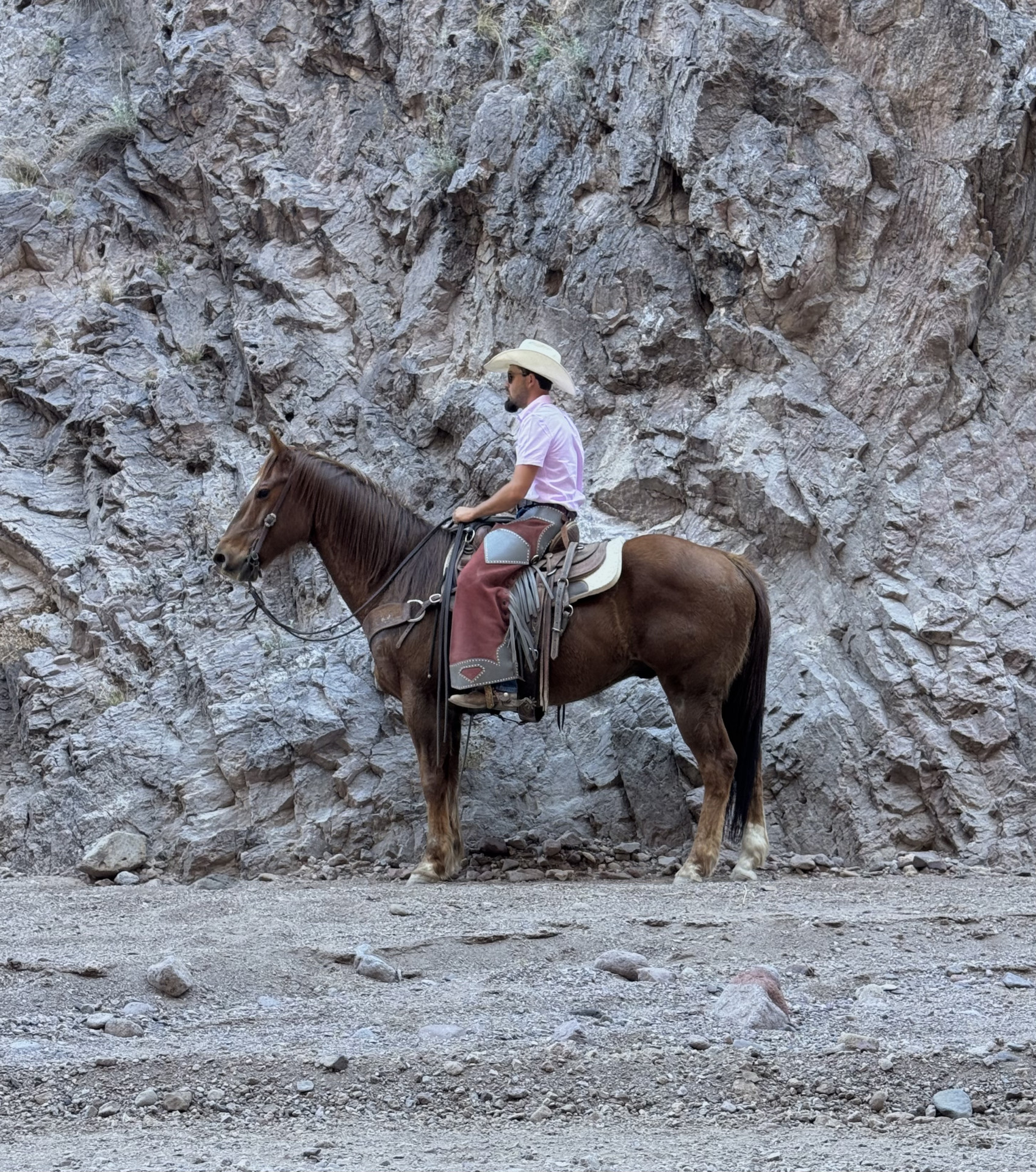Frank is a grade 12 yr old gelding that stands 15.2 hh. Frank is super gentle, easy to be around, easy to catch, ties well, loads and unloads great, hauls good with others, picks up all 4 feet, bathes & saddles great etc. He’s been used for ranch work, dragging calves, pushing cattle, loaded trucks for shipping season, trail rides, has been across town, ponied other horses, crosses water, up hills, down canyons, anywhere and will go all day! He has that strong hip, good shoulder, and plenty of bone. Frank isn’t spooky in the slightest, has ZERO buck, bolt or rear and is 100% reliable any day, anywhere! He absolutely loves attention. He’s been ridden out in the kind of country that makes a good, honest horse — through rocks and brush, across creeks and water, up and down steep hills, and out around wildlife, ranch vehicles, and everyday road traffic. Tarps moving, flags flying, bridges, gates, tires, etc. He is easy to handle, easy to ride, and easy to appreciate. Please feel free to call with any questions, and if you’re able, come visit him in person and take a ride. It’s the best way to see what a great horse he is.