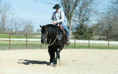 Blackjack has always been very easy to train and has always been in very good hands, He is very responsive to your hands and feet and has beautiful flowing gaits and smooth transitions while also giving you that solid ride that the draft crosses are known for,He stands to be groomed and saddled and is good for the farrier. Blackjack has been exposed to all kinds of farm machinery including bicycles, dogs, ponys, tarps, bouncy balls and numerous other things. He rides both English , western or bareback and is also broke to pull the carriage if you want to go on a Sunday cruise.