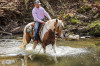 PC, a stunning yet classy palomino and white gelding standing 15.1 hands tall and 6-years-old. This gelding is what trail dreams are made of and is the total trail horse deluxe package. If you are looking for something safe, steady, and reliable to take on a nice quiet trail ride to what might turn into even the roughest, sketchiest trails- without hesitation PC will be your guy. He will wade through the creeks, cross over logs, and take you up or down some pretty steep ground, while doing it slowly and safely. He has such a puppy-dog personality, so sweet and kind. He loves attention and will meet you at the gate every-time to be petted on, which makes him pretty darn easy to catch, as well. He will ride out alone, or in a group. He does good with noisy traffic, deer running through the woods, and riding through cattle. To say the least, exposure is something this guy has covered- making him an easy mount to enjoy and have fun on, while being able to feel safe, comfortable, and confident.