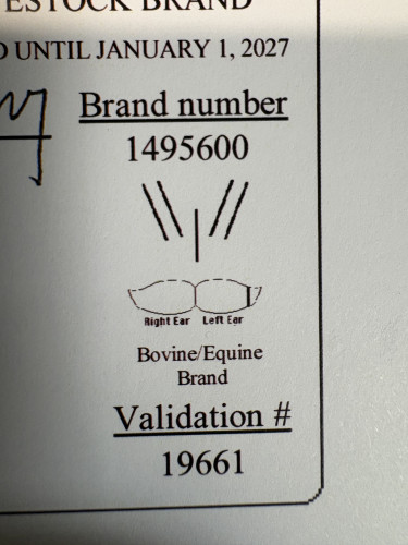 This brand has been in my family since 1988. Easy single iron brand. Dues are paid until 2027.