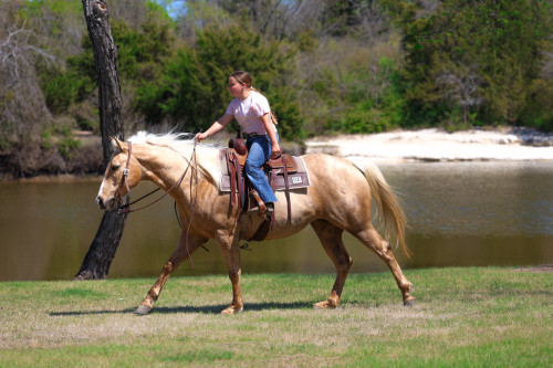 She rides the very best. Of course she has all the fancy buttons to spin around and slide to a stop. But she will go as fast or as slow as you want her to go. She is the kind you can really enjoy riding and know you can’t screw up. She is ABSOLUTELY SAFE and BROKE for anyone to ride. If you can sit on her you can ride her no matter your riding level or age. I MEAN ANYONE CAN RIDE HER and ABSOLUTELY DO ANYTHING THEY WANT ON HER. You can ride her once a month a once a year and she is the same. You can catch her fresh out of the pasture and go. Glory does not need to be tuned up or warmed up. She stands perfect to be saddled and mounted. She will let you use a mounting block, fence, or bucket to get on and off. SHE DOES NOT HAVE ANY BAD HABITS OR QUIRKS. She will cross water, cross bridges, has been rode in every kind of terrain. She is the true definition of a safe family horse.