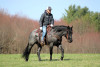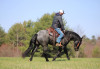 Outside the arena, Smurf has been extensively trail ridden. He will confidently go out alone or in a group and has been through water and over rough terrain without issue. He handles new environments with a level head and willing attitude.