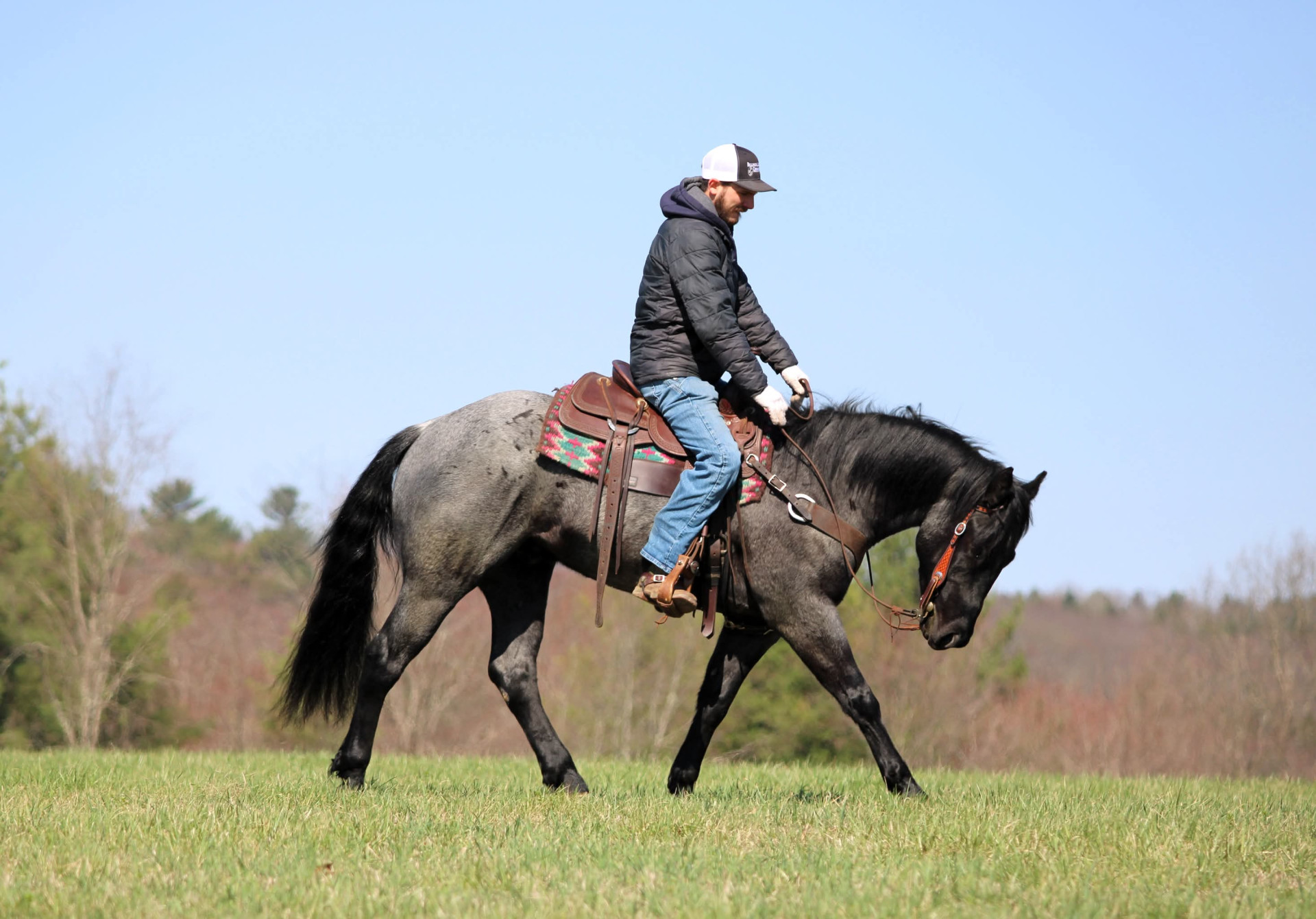 If you are looking for a beautiful, gentle, and well minded young gelding, Smurf is one you will not want to miss. This eye catching blue roan not only stands out in color, but also in his kind demeanor and willing attitude.