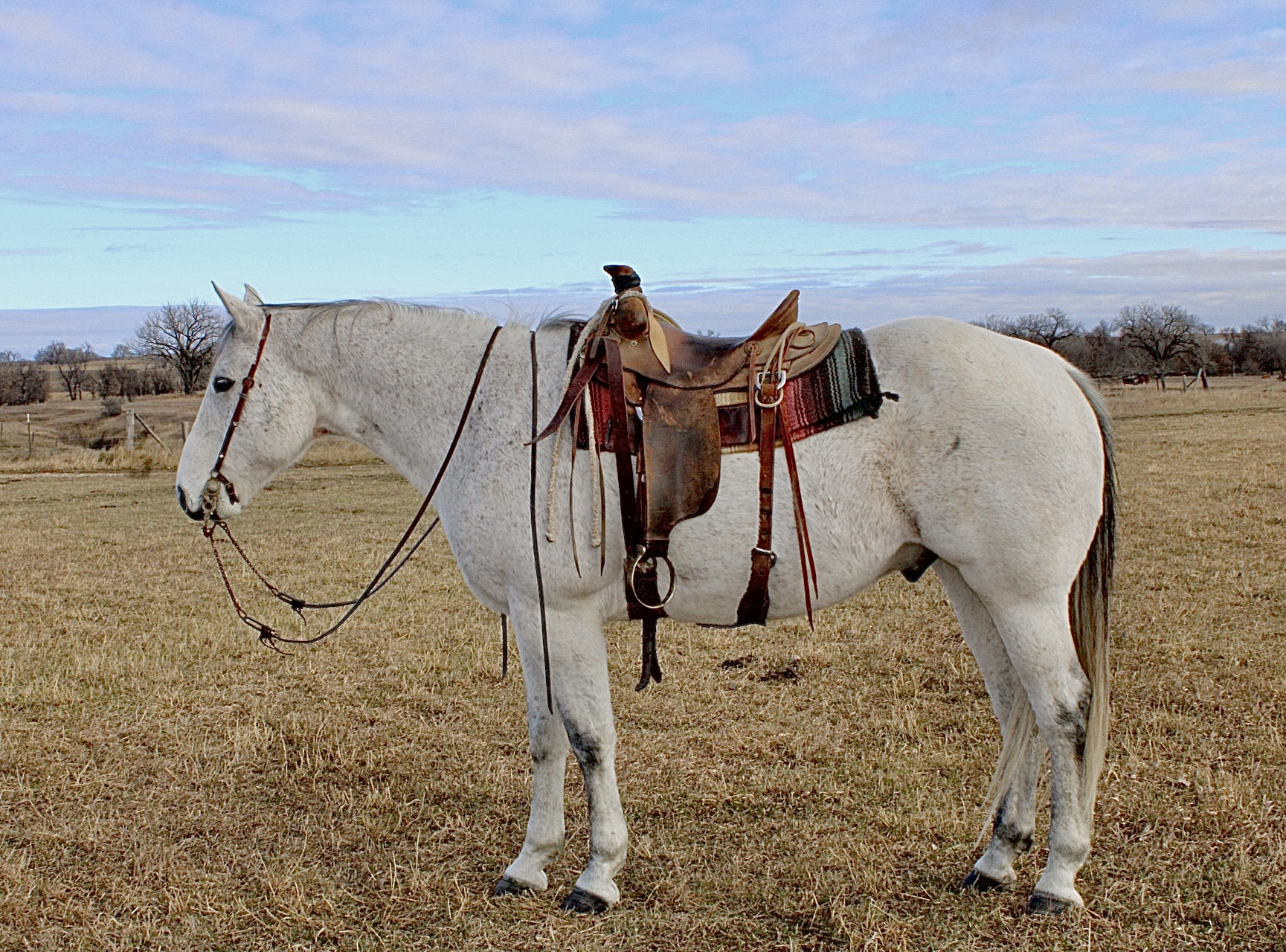 “TRES RUDE BARTENDERS” AKA Junior, is a 2013 model, solid, all-around ranch gelding: standing 16 hands, weighing 1360lbs, wearing a size 2 shoe. Junior is built stout and correctly, with a kind eye, loving and gentle demeanor. Junior has seen all aspects of ranch work, travelling various rough countries, roping all sizes of cattle and horses, is a staple in the sorting gate, has been picked up on, and used at ranch rodeos. Junior is a true gentleman, that the whole family can ride! No buck, bite or kick, stands tied and is good for the farrier. For more information, call Blaine @ (406) 939-2859.