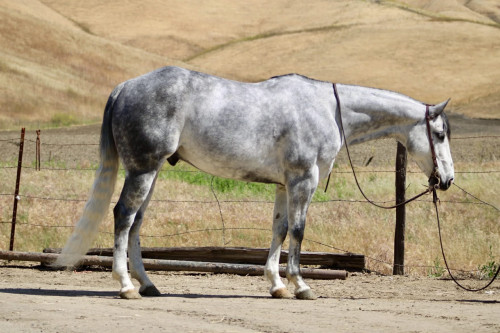 AQUA 8-Year-Old Dapple Grey Gelding • 15 Hands Aqua is the kind of gelding that’s been ridden with a purpose. Standing a solid 15 hands, this dapple grey is put together right with bone and shape, with a look that holds up anywhere—but it’s not just appearance. He’s a horse that’s been used, seasoned, and understands his job. He rides the way a good one should. Soft in the bridle, smooth through his transitions, and naturally balanced. He picks up both leads without effort, stays quiet in your hands, and carries himself with a steady, consistent feel. His stop is correct, his turnaround is clean, and he backs without resistance. Nothing overdone—just honest every time you ride him. Where Aqua really stands out is outside. He’s a true go-anywhere gelding. Hills, rocks, brush, and water crossings are all part of his routine. He travels carefully and stays sure-footed, and keeps his rider in a good position from start to finish. He’s been through obstacles and meets them the same way every time—quiet, willing, and confident Bridges, tarps, flags, logs—he doesn’t overthink it or make it a big deal. He walks up, handles it, and goes on. He’s been hauled and ridden in different places and stays consistent. No change in demeanor, no adjustment needed—he goes to work wherever you take him. He’s been used on the ranch and is good around cattle, and really stands out for how steady and dependable he is outside the arena. On the ground, Aqua is easy to have around. He’s good to catch, stands tied, saddles up without issue, and is well-mannered for the farrier and vet. He hauls quietly and settles in without fuss. This is a gelding for someone who values one that’s been seasoned, stays consistent, and handles whatever you ask of him without making it complicated. Aqua is one you can count on. Longhorn Ranch Dina • 831-537-1915 Paicines ca Shipping available nationwide with reputable haulers. We welcome in-person visits or video calls to go over him in detail.