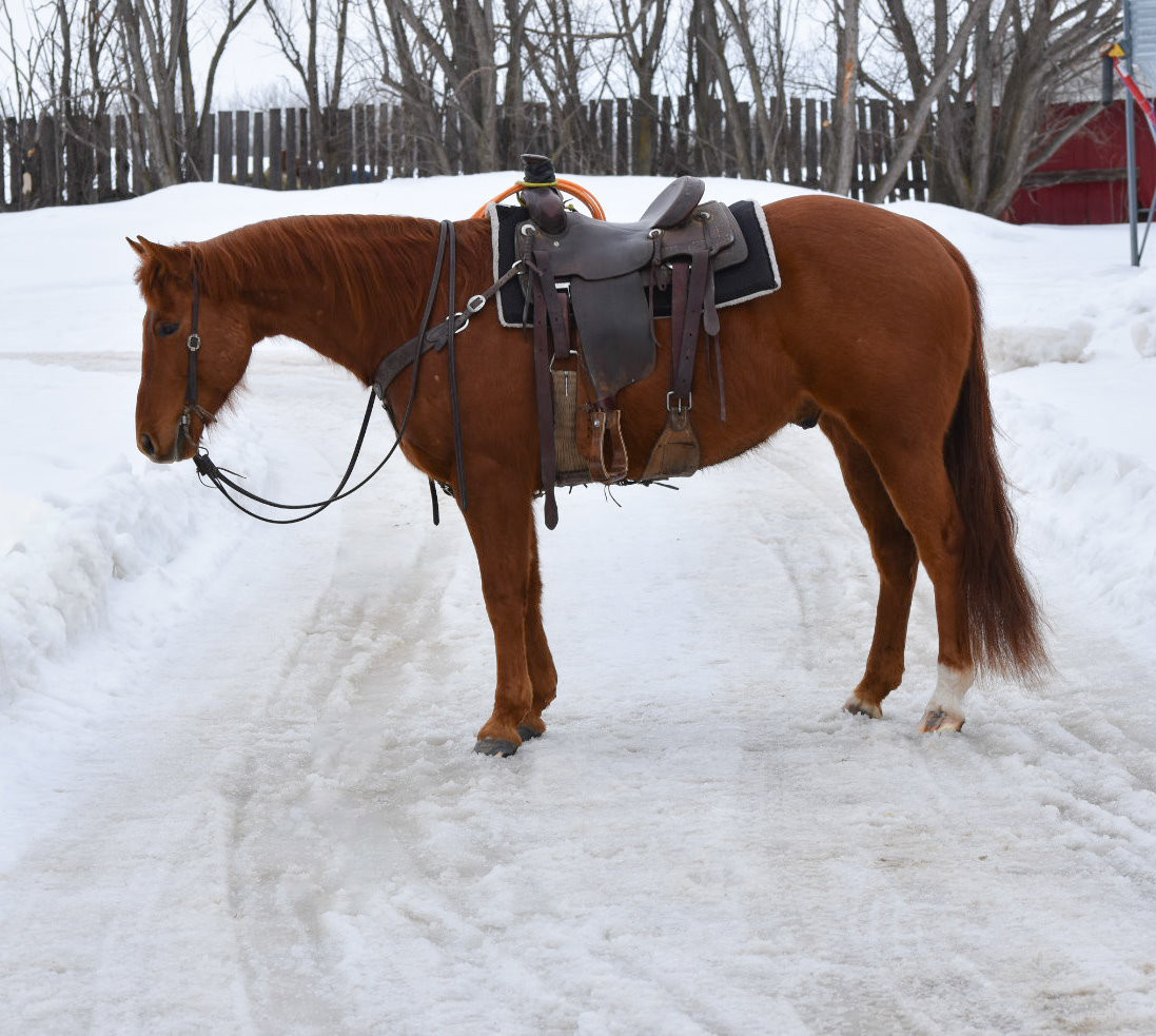 This gelding is old school cool. If you’re looking for a horse that can go to work and swing a set of splits during the week then jackpot on the weekend you’ve found him. Rabbit sticks at 15.1hh and weighs in at 1200lbs with plenty of bone to go along. Head, heel or any job you need done, Rabbit will take it all in stride. He’s been headed and heeled on from the 14 ropings down by all levels of ropers. Stands like a rock in the corner, scores sharp, has a good move and face. In the heeling he runs to his spot stops square and is strong on the horn. We’ve used rabbit outside for the last three years doing all the normal jobs, he’s snubbed colts doctored cattle and drug calves. He’ll go all day, work a cow and hold anything you latch him to.