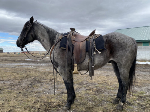 Bexley is a nice moving gelding that has been a pleasure to have in my string. Standing at 14.3 and wearing a size 1 shoe Bexley has seen all seasons of ranch work. From spring calving, branding, pasture doctoring summer gathers and fall work. My family and I have also used him on the trails hunting sheep in the fall. Had a solid W/T/L on both leads, neck reins and a nice stop, Rides one handed and suitable for intermediate and up. Any questions please call. Sells sound.