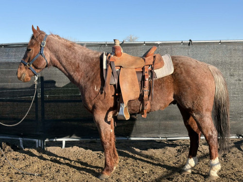 Monty is a flashy very well broke and well-built gelding! He is a true all-day horse that can be used for anything you need. He has been used as a ranch horse, trail horse, and we have ranch roped on him. We have used Monty to lead pack strings as well as packed him. Monty has a big motor and will never quite you. He has a very light neck rein and great body control. I do have his registration papers but no transfer, so will sell grade.