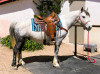 He had a basic health/soundness screening by the Vet who aged him at 14 years. He has been vaccinated, has coggins done and temporary brand inspection papers. He has also had sand clear and has been wormed and is on daily wormer for 30 days. The Vet did find a sunflower seed size "spot" on this gray horse’s tail.