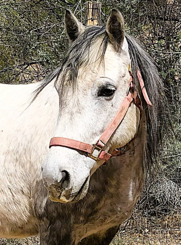 This 14H grey pony was found on a ranch after the owner died and all the stock had supposedly been rounded up. He survived by himself for quite some time...he is a tough, hardy horse.