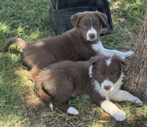 Red/white ABCA Border Collie pups out of working parents. 3 males and 2 females. Last 2 pictures are sire & dam of the pups.