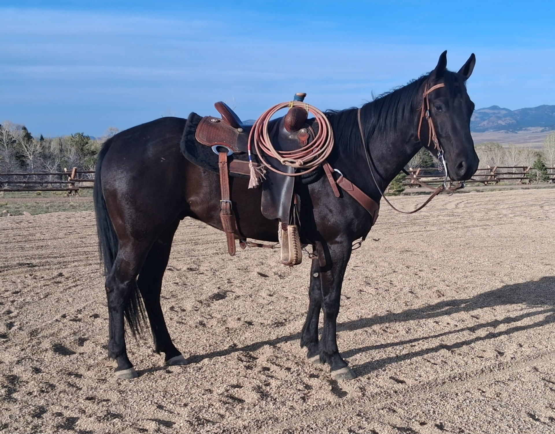 “Charm” is a beautiful gelding! He has been on trail rides in the mountains and is started on the head side on the dummy. He knows leg ques and is ready to go in any direction. Charm is good for the farrier, loads in the trailer, and is well behaved with other horses.