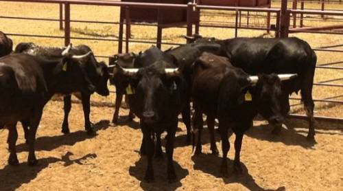 19 HEAD OF CORRIENTE. ALL BUT FOUR ARE HEIFERS. 1 IS PAIR. ALL ARE BLACK EXCEPT FOR TWO ROANS, 1 RED, AND 1 BROWN. ALL PREG CHECKED WITH OPEN HEIFERS LUTALYSE ON 6-19-2013 AND TURNED OUT WITH TWO BLACK CORRIENTE BULLS. TWO ARE 2+ MONTHS BRED AND ONE IS 6 MONTHS BRED. REALLY NICE SET AND MOST ARE STILL ROPEABLE. ROPE THEM AND THEN BREED THEM AND USE AS REPLACEMENT HEIFERS. FMI 254-592-8159 OR 254-592-2405 OPEN AND BRED HEIFERS ARE $750 EACH AND THE ONE PAIR IS $850.