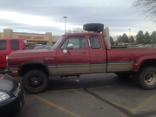 1993 Dodge W350 (1 ton 4x4) dually. It has 180K miles, 6 new Goodyear Dura Tracs, Kelderman airbags front and back, manual transmission, "killer" dowel pin has been fixed which also fixed timing cover leak, gets 400 miles per tank, just adjusted valves and replaced crispy valve cover gaskets, has a gooseneck ball, keeping the headache rack and toolbox, any questions - call me at 303-803-7983 / just need more room for the family
