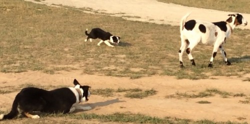 Hootie is one of the most intense and natural 5 month old puppies we have ever seen. He LIVES to work and has intense eye, TONS of style, natrual creep and movement and incredible instincts. He isnt too pushy, but will definitely bite (hard!) when needed. He isnt afraid of anything and will not back down from pressure or stock. He is going to make a SUPER STAR working dog for sheep or cattle.
