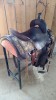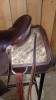 16 IN. SEAT WITH COWBOY BACK, DOUBLE RIGGIN WITH CLOSE CONTACT SKIRT, NICE STRINGS AND CONCHOS, HOW ABOUT THAT HAIR SKIRT COOL LOOKING, SOLID SADDLE