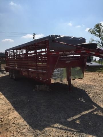 2015 New Delco canvas top 6.8 x 24 trailer has diamond plate gravel guard , full escape door on passenger side , tubing sides , 2 cut gates , wood floor, butterfly rear gates , 3 inch rear bumper,2- 7000 pound torsion axles , spare tire