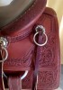 Used SRS Saddlery 16" Modified Association with a 4" post horn $1150 Half tooled, sanded rough out/smooth/floral corners/running W and shell border,7" gullet, Full QH bars, smooth grain leather bicycle seat, 3" Cheyenne roll, drop plate rigging, six strings with rings, built on a rawhide covered hardwood tree in the USA. A very nice saddle that shows little use. $1150