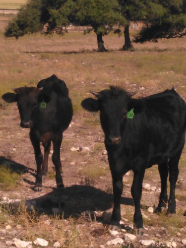 5 solid black heifers for sale. Horns about a 1/3 of ear length. Should be ready to rope at the end of spring. Straighten out ready to go.
