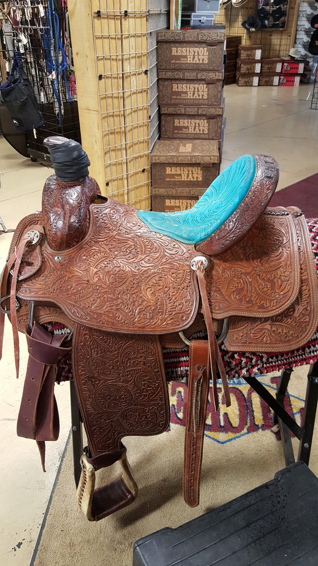 Gorgeous fully tooled high back roping saddle.