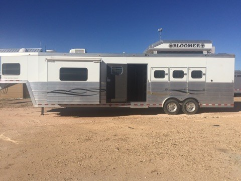 This trailer has a 15’ short wall, 8’ slide out, midtack, hay pod, generator, and duster conversion. Very well taken care of trailer with good tires.