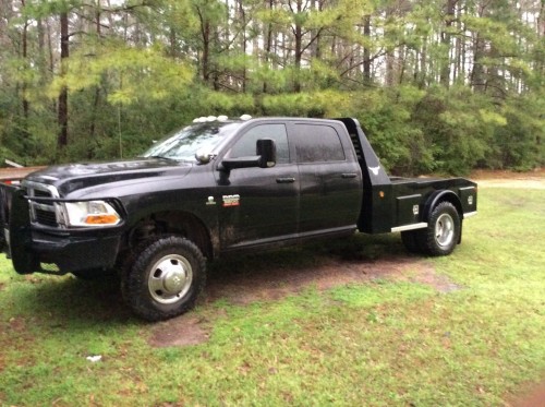 2011 Ram 3500 4wd 6.7 Cummins Diesel 6 sp standard transmission electric Windows and locks , carpet front end replacement and neckover bed. Truck has 52,000 original miles on it and I have owned it since it was brand new . Interior is almost like brand new outside may have a scratch or ding but in great shape. Truck is all factory except for the tires they are BF Goodrich mud terrains at about 80 percent .Truck has never had a chip or programmer on it. The neckover bed was installed last year and is just like new. Still have the factory bed that came on it and would let that go with it. Also has custom built fuel tank on rear of bed holds about 50 gallons . Price is neg.