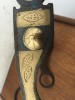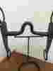 sale pending---PRISON BIT?: I got this bit on a trade from a gentleman that said he bought as being a prison made bit. It has that look. There are no marks, some blue on one cheek, and appears to have some age. The condition is good. It looks like it has not seen much use. 7 1/2" cheeks and 6" mouth. Engraved brass inlays. We pay shipping within the 48 states. We accept Pay Pal, most credit cards, money order, check