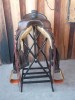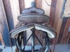 This saddles is a used Handmade 15" Seat Ranch Saddle made by Ken Rayes. This saddle features basket weave tooling on the back jockey and swell cover. This saddle comes with a back cinch, leather back billets, leather tie strap and leather off billet, drop down BARRY GUILLORY maker marked hardware, Heavy oil hard seat, real wool in good condition, and six stainless steel conchos with strings. This saddle is an exceptional well made saddle. Tree is solid. Buyer to pay $45.00 shipping via FedEx with tracking and insurance. Additional shipping may be charged if you wish to send via USPS. We prefer Paypal as payment but accept debit and credit card payments as well. Please email for additional photos. If no answer, please leave a detailed Voicemail. Please review this saddle carefully and ask questions to ensure your satisfaction. All sales are final. Thank you.