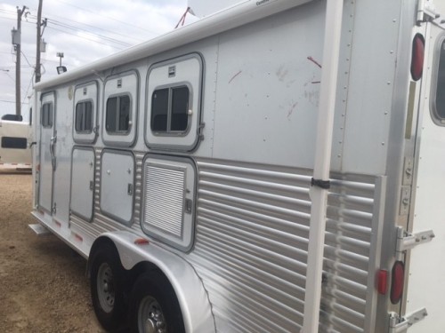 3 horse with drop down windows, mangers, 4,000 watt onan generator, awning and a hayrack. Nice little trailer.